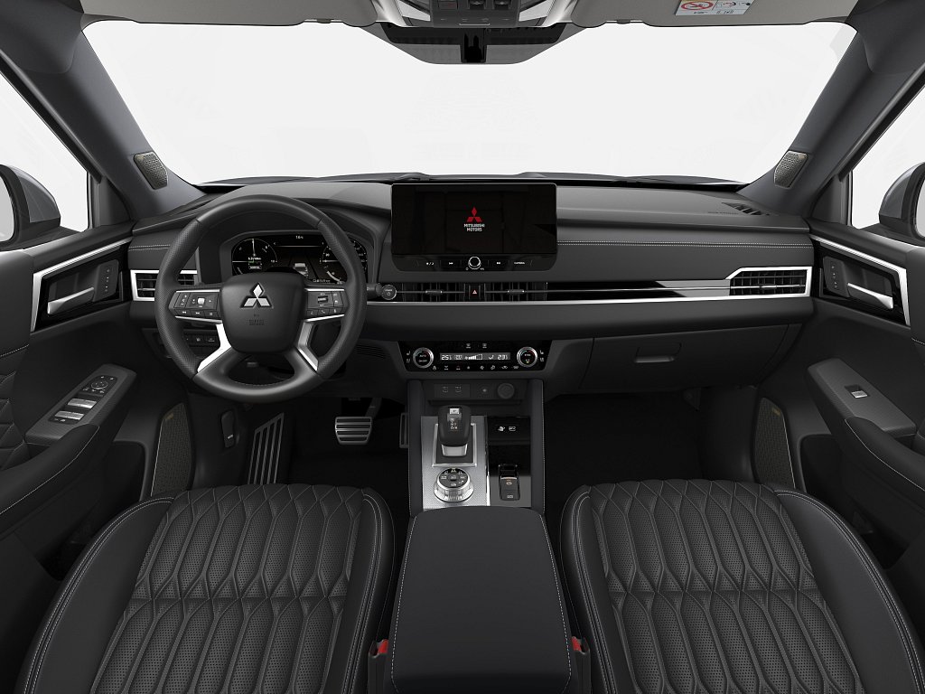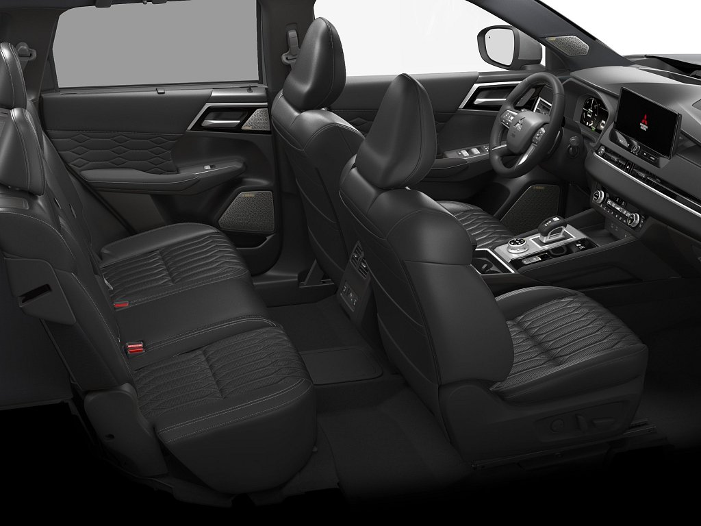 Aktivní kontrola stáčení kolem svislé osy (AYC), Systém sledování mrtvého úhlu (BSW), Systém sledování dopravní situace za vozidlem při couvání (RCTA), Systém monitorování a podpory udržování jízdního pruhu (LDW), Pokročilý systém pro aktivní udržování v jízdním pruhu Advanced Lane (LDP), Systém pro nouzové udržení v jízdním pruhu (ELKA), Asistent změny jízdního pruhu (LCA), Adaptivní tempomat (ACC), Systém rozpoznávání dopravních značek upravujících rychlost (TSR) s inteligentním asistentem pro dodržení povolené rychlosti, Antiblokovací brzdový systém (ABS), Elektronický systém rozdělení brzdného účinku (EBD), Bezpečnostní systém přednostního brzdění (BOS), Nouzový brzdový asistent (EBA), Systém signalizace nouzového brzdění (ESS), Systém aktivního řízení stability (ASC), Systém elektronického řízení trakce (TCL), Systém stabilizace přívěsu (TSA), Systém pro analýzu pozornosti řidiče na základě stylu jízdy (DAA), Systém pro sledování pozornosti řidiče pomocí kamery (DMS), Systém předcházení a zmírňování následků čelního nárazu s detekcí chodců a cyklistů (FCM), Systém předcházení a zmírňování následků nárazu při couvání (RAEB), Asistent zmírňování rizika kolize při odbočování na křižovatkách, Tlačítko pro nouzové přivolání pomoci (E-Call), BEZPEČNOST, Karoserie s vysokou odolností proti nárazu s použitím prvků z vysokopevnostní oceli (RISE), Systém kontroly tlaku v pneumatikách (TPMS), Sada pro nouzovou opravu pneumatik, AIRBAGY, Čelní airbagy řidiče a spolujezdce (x2), spínač deaktivace airbagu spolujezdce, Boční airbagy řidiče a spolujezdce (x2), Hlavové (okenní) airbagy vpředu a vzadu (x2), Kolenní airbag řidiče, Středový airbag mezi předními sedadly, BEZPEČNOSTNÍ PÁSY, 3bodový bezpečnostní pás ELR na předních sedadlech s předpínačem a omezovačem zátěže (x2), 3bodový bezpečnostní pás ELR na zadních sedadlech (x3) s předpínačem a omezovačem zátěže (x2), Výškově nastavitelné horní úchyty bezpečnostních pásů na předních sedadlech (x2), Upozornění na nezapnuté bezpečnostní pásy na všech sedadlech, BEZPEČNOST DĚTÍ, Dětská pojistka zámků zadních dveří, Ukotvení dětské bezpečnostní sedačky ISOFIX (x2 na zadních sedadlech), Deaktivace stahování zadních oken z místa řidiče, Upozornění na přítomnost cestujících na zadních sedadlech, ASISTENČNÍ SYSTÉMY ŘIDIČE ZAMĚŘENÉ NA JÍZDNÍ KOMFORT, Plně digitální přístrojový panel s 12,3" TFT displejem, Elektrická parkovací brzda (EPB) s funkcí Auto Hold, Otočný ovladač jízdních režimů (7 režimů), Asistent rozjezdu do kopce (HSA), Asistent pro sjíždění strmých kopců (HDC), Dešťový senzor, Senzor automatického rozsvěcení světel, Automatická dálková světla (AHB), Elektrický posilovač řízení (EPS) s variabilním účinkem, Head Up Display (HUD) s projekcí na čelní sklo, Bezrámečkové digitální vnitřní zpětné zrcátko s automatickým stmíváním s projekcí ze zadní kamery, POMOC PŘI PARKOVÁNÍ, Multi Around Monitor 360° s projekcí na displeji audiosystému (kamera x4), Parkovací senzory vpředu a vzadu (x8), ZABEZPEČENÍ, Automatické uzamčení dveří za jízdy, Alarm, Elektronický imobilizér, AUDIO A MULTIMÉDIA, Audiosystém 12,3", navigace, podpora bezdrátového Android Auto™ a CarPlay®, Bluetooth®, autorádio AM/FM/DAB (SDA), Ovládání některých funkcí vozidla prostřednictvím hlasových povelů, Podpora online Google služeb, Datový a nabíjecí vstup USB-C na předním panelu, 3A (x2), Komunikace s vozidlem a ovládání některých jeho funkcí prostřednictvím mobilní aplikace Mitsubishi Motors, AUDIO A MULTIMÉDIA, Nabíjecí vstup USB-C v zadní části středové konzoly, 3A (x2), Ozvučení Dynamic Sound Yamaha Ultimate s 12 reproduktory včetně subwooferu a digitálního zesilovače, POHODLÍ, Centrální zamykání dveří s dálkovým ovládáním a dvěma ovladači, Inteligentní systém bezklíčového ovládání centrálního zamykání, Startování / vypínání motoru tlačítkem, Ovládání audiosystému na volantu, Výškově a podélně nastavitelný volant, Roletka zavazadlového prostoru, Elektrická zásuvka 12V (v přední části středové konzoly) (x1), Programovatelný časovač nabíjení vozidla, Programovatelný časovač předehřevu / předvychlazení interiéru vozidla, Palubní počítač, ukazatel vnější teploty, Bezdrátové nabíjení mobilního telefonu (15W), Elektrické ovládání předních a zadních oken s funkcí AUTO a ochranou proti přivření, Elektricky ovládané páté dveře (ovládání pohybem chodidla pod zadním nárazníkem, nastavitelná výška otvírání), Elektrická zásuvka 230 V / 1500 W (1x vzadu, 1x v zavazadlovém prostoru), Panoramatické elektricky ovládané střešní okno se sluneční clonou, Sluneční clony na zadních oknech (stahovací roletky), KLIMATIZACE, Tepelné čerpadlo, Výdechy ventilace pro zadní cestující (pod předními sedadly a v zadní části středového tunelu), Třízónová automatická klimatizace s pylovým filtrem, EXTERIÉR, Tónovaná skla s filtrem UV záření, přední sklo bezpečnostní vrstvené, zadní pevnostní temperované, Střešní anténa typu Shark fin, Přední a zadní nárazník v barvě karoserie, Kliky dveří v barvě karoserie, Lemy bočních oken chromované, Zadní střešní spojler, Plastové lemy blatníků černé, Zatmavená zadní boční skla a zatmavené zadní sklo, Podélné střešní ližiny stříbrné, Spodní kryt předního a zadního nárazníku titatově šedý, Prostřední a zadní boční dveřní sloupek v leskle černé barvě, Spodní část předního a zadního nárazníku v barvě karoserie, Spodní lemy dveří v barvě karoserie, Dvoubarevné proveden