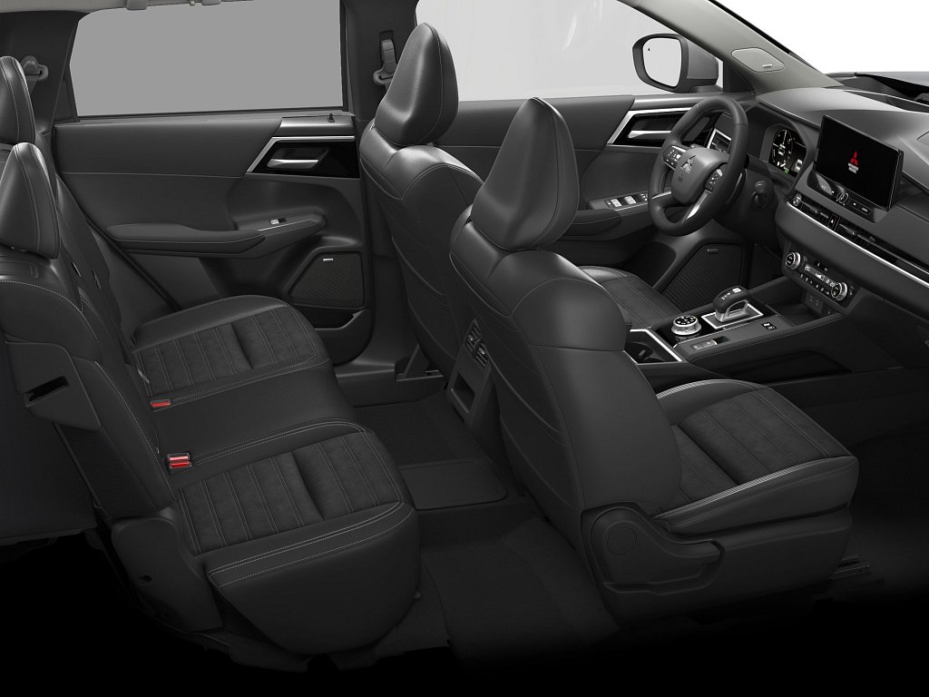 VYSPĚLÉ ASISTENČNÍ SYSTÉMY PRO JÍZDNÍ BEZPEČNOST (ADAS), S-AWC pokročilý systém pohonu všech kol s elektronickou volbou režimů (4WD), Aktivní kontrola stáčení kolem svislé osy (AYC), Systém sledování mrtvého úhlu (BSW), Systém sledování dopravní situace za vozidlem při couvání (RCTA), Systém monitorování a podpory udržování jízdního pruhu (LDW), Pokročilý systém pro aktivní udržování v jízdním pruhu Advanced Lane (LDP), Systém pro nouzové udržení v jízdním pruhu (ELKA), Asistent změny jízdního pruhu (LCA), Adaptivní tempomat (ACC), Systém rozpoznávání dopravních značek upravujících rychlost (TSR) s inteligentním asistentem pro dodržení povolené rychlosti, Antiblokovací brzdový systém (ABS), Elektronický systém rozdělení brzdného účinku (EBD), Bezpečnostní systém přednostního brzdění (BOS), Nouzový brzdový asistent (EBA), Systém signalizace nouzového brzdění (ESS), Systém aktivního řízení stability (ASC), Systém stabilizace přívěsu (TSA), Automatické rozsvěcení brzdových světel při regenerativním brzdění, Systém pro analýzu pozornosti řidiče na základě stylu jízdy (DAA), Systém pro sledování pozornosti řidiče pomocí kamery (DMS), Systém předcházení a zmírňování následků čelního nárazu s detekcí chodců a cyklistů (FCM), Systém předcházení a zmírňování následků nárazu při couvání (RAEB), Asistent zmírňování rizika kolize při odbočování na křižovatkách, Tlačítko pro nouzové přivolání pomoci (E-Call), BEZPEČNOST, Karoserie s vysokou odolností proti nárazu s použitím prvků z vysokopevnostní oceli (RISE), Systém kontroly tlaku v pneumatikách (TPMS), Sada pro nouzovou opravu pneumatik, AIRBAGY, Čelní airbagy řidiče a spolujezdce (x2), spínač deaktivace airbagu spolujezdce, Boční airbagy řidiče a spolujezdce (x2), Hlavové (okenní) airbagy vpředu a vzadu (x2), Kolenní airbag řidiče, Středový airbag mezi předními sedadly, BEZPEČNOSTNÍ PÁSY, 3bodový bezpečnostní pás ELR na předních sedadlech s předpínačem a omezovačem zátěže (x2), 3bodový bezpečnostní pás ELR na zadních sedadlech (x3) s předpínačem a omezovačem zátěže (x2), Výškově nastavitelné horní úchyty bezpečnostních pásů na předních sedadlech (x2), Upozornění na nezapnuté bezpečnostní pásy na všech sedadlech, BEZPEČNOST DĚTÍ, Dětská pojistka zámků zadních dveří, Ukotvení dětské bezpečnostní sedačky ISOFIX (x2 na zadních sedadlech), Deaktivace stahování zadních oken z místa řidiče, Upozornění na přítomnost cestujících na zadních sedadlech, ASISTENČNÍ SYSTÉMY ŘIDIČE ZAMĚŘENÉ NA JÍZDNÍ KOMFORT, Plně digitální přístrojový panel s 12,3" TFT displejem, Elektrická parkovací brzda (EPB) s funkcí Auto Hold, Otočný ovladač jízdních režimů (7 režimů), Asistent rozjezdu do kopce (HSA), Asistent pro sjíždění strmých kopců (HDC), Dešťový senzor, Bezrámečkové vnitřní zpětné zrcátko s automatickým stmíváním, Senzor automatického rozsvěcení světel, Automatická dálková světla (AHB), Elektrický posilovač řízení (EPS) s variabilním účinkem, Head Up Display (HUD) s projekcí na čelní sklo, POMOC PŘI PARKOVÁNÍ, Multi Around Monitor 360° s projekcí na displeji audiosystému (kamera x4), Parkovací senzory vpředu a vzadu (x8), ZABEZPEČENÍ, Automatické uzamčení dveří za jízdy, Alarm, Elektronický imobilizér, AUDIO A MULTIMÉDIA, Audiosystém 12,3", navigace, podpora bezdrátového Android Auto™ a CarPlay®, Bluetooth®, autorádio AM/FM/DAB (SDA), Ovládání některých funkcí vozidla prostřednictvím hlasových povelů, Podpora online Google služeb, Ozvučení Dynamic Sound Yamaha Premium s 8 reproduktory, Datový a nabíjecí vstup USB-C na předním panelu, 3A (x2), Komunikace s vozidlem a ovládání některých jeho funkcí prostřednictvím mobilní aplikace Mitsubishi Motors, Nabíjecí vstup USB-C v zadní části středové konzoly, 3A (x2), POHODLÍ, Centrální zamykání dveří s dálkovým ovládáním a dvěma ovladači, Inteligentní systém bezklíčového ovládání centrálního zamykání, Startování / vypínání motoru tlačítkem, Ovládání audiosystému na volantu, Výškově a podélně nastavitelný volant, Roletka zavazadlového prostoru, Elektrická zásuvka 12V (v přední části středové konzoly) (x1), Programovatelný časovač nabíjení vozidla, Programovatelný časovač předehřevu / předvychlazení interiéru vozidla, Palubní počítač, ukazatel vnější teploty, Bezdrátové nabíjení mobilního telefonu (15W), Elektrické ovládání předních a zadních oken s funkcí AUTO a ochranou proti přivření, Elektricky ovládané páté dveře (ovládání pohybem chodidla pod zadním nárazníkem, nastavitelná výška otvírání), Elektrická zásuvka 230 V / 1500 W (1x vzadu, 1x v zavazadlovém prostoru), KLIMATIZACE, Dvouzónová automatická klimatizace s pylovým filtrem, Tepelné čerpadlo, Výdechy ventilace pro zadní cestující (pod předními sedadly a v zadní části středového tunelu), EXTERIÉR, Tónovaná skla s filtrem UV záření, přední sklo bezpečnostní vrstvené, zadní pevnostní temperované, Střešní anténa typu Shark fin, Přední a zadní nárazník v barvě karoserie, Kliky dveří v barvě karoserie, Prostřední a zadní boční dveřní sloupek v černé barvě, Spodní část předního a zadního nárazníku černá, Spodní lemy dveří černé, Lemy bočních oken chromované, Zadní střešní spojler, Plastové lemy blatníků černé, Zatmavená zadní boční skla a zatmavené zadní sklo, Podélné střešní ližiny stříbrné, Spodní kryt předního a zadního nárazníku titatově šedý, SVĚTLA, Přední LED denní světla, Zadní kombinovaná LED světla, Třetí zadní brzdové LED světlo, Zadní LED m